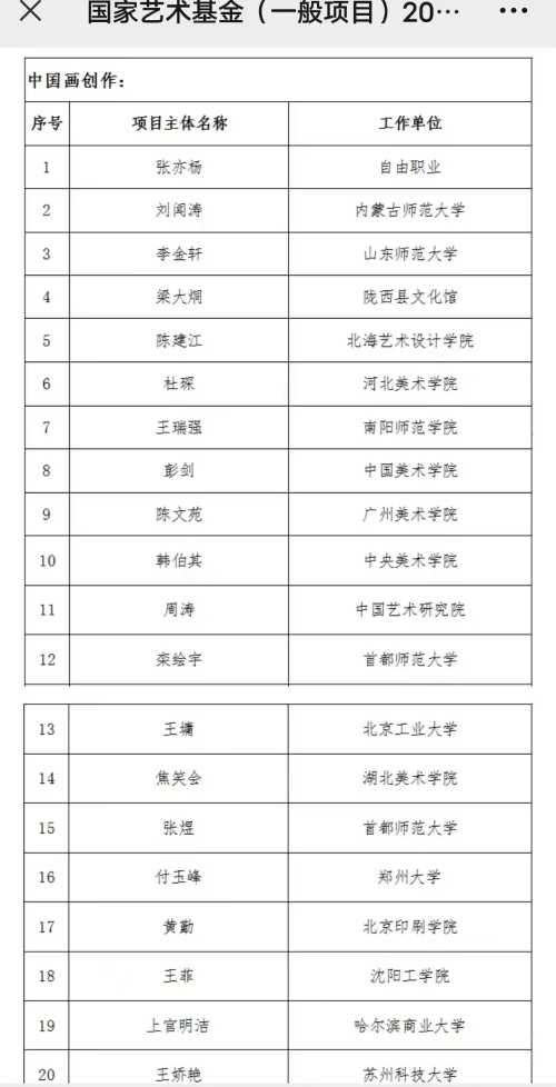 近日,国家艺术基金管理中心公布了《国家艺术基金(一般项目)2023年度资助项目名单》,我校美术学院陈建江老师喜获一项,值得庆贺。