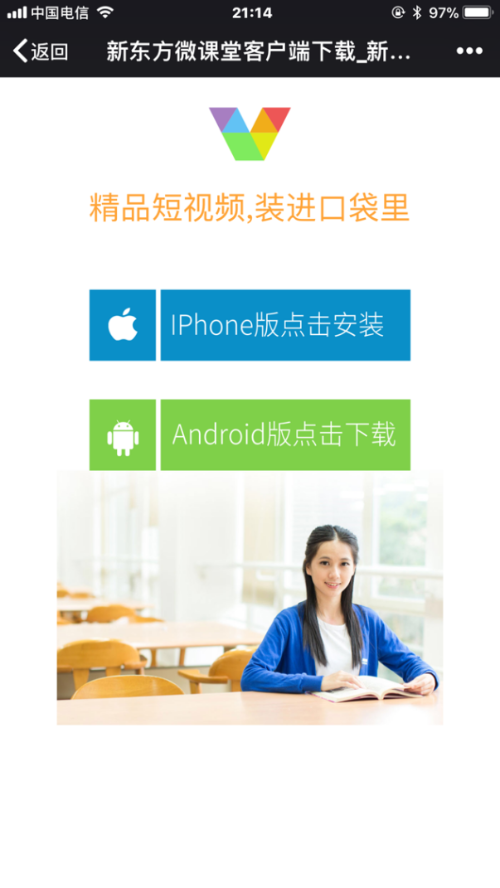 新东方在线微课堂学习平台 (vl.koolearn.com)是新东方在线对微学习、微课程的趋势研究出的一款以视频为核心资源的学习平台产品其定位为基于应用场景的语言应用百科。微课堂课程体系包括畅学口语、活学商务、乐学外语、语言应试、留学直通车、践行职场等资源。