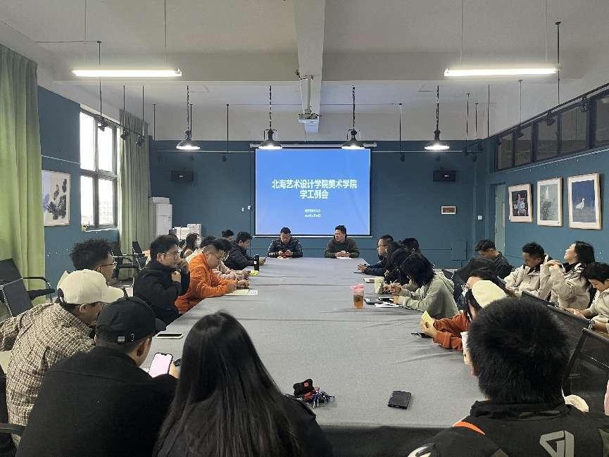 20231116日,美术学院召开11月学工例会,会议由第五党总支副书记鲁明阳和美术学院学工办主任林昌华主持,美术学院各年级班级辅导员参会。会上对于最近学生工作中各班情况做出总结与分析,并关心沟通班级辅导员目前工作现状,对各班级辅导员提出的问题一一作出解答,积极查漏补缺,对已发生的问题迅速处理解决,未发生的问题提高防范。强调各级部门积极配合,上下一心共同做好学生工作。(许荣军 摄)
