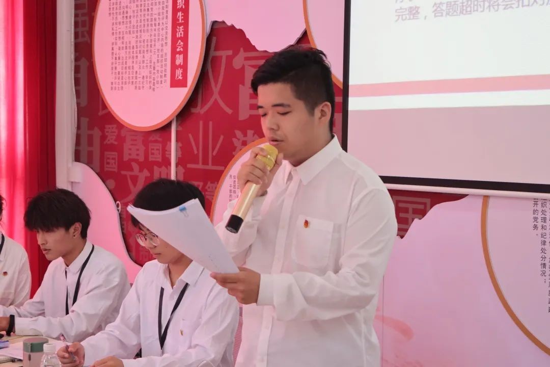 待准备工作结束,比赛准时开始。在热烈欢迎大家的到来后,主持人宣读了比赛规则。本次比赛共三轮,分为单选题(个人赛)、多选题(团队赛)和冒险题(团队赛)。 认真读完规则后,选手们正式开始了本场比赛。 第一轮,每组选手按顺序作答,选手们胸有成竹地报出正确答案,可见赛前准备之充分。也有同学在答题过程中出现了失误,不过很快就调整好状态,继续认真听题,积累未掌握的党史知识。工作人员也在认真地记录选手的答题情况,确保比赛的公平公正。 第二轮,小组团队题,选手们可以通过短暂的小组讨论进行作答。团队的力量是巨大的,同学们的正确率有了提高,但由于题目的多选性,还是有失误的情况出现,可见我们对党史知识的了解还有待提升。 第三轮冒险题,比赛小组依据排名顺序先后决定自己是否选择作答。因为本轮答题有一定的扣分可能,所以各组通过权衡利弊,都做出了艰难的抉择。没有选择冒险的小组为保持优势,稳妥应对。而选择冒险的小组,其勇气可嘉,虽然有回答失误的情况出现,但小组成员都没有气馁,因为通过题目,掌握了更多的党史知识,本次比赛的真正目的就已经达到了。 由于平分的情况出现,小组间进行加时赛。但由于压力过大,知识掌握不足等因素,有的小组败下阵来。不过,大家都展现了各自的风采,都有着极为出色的表现。比赛最后,工作人员进行成绩总和,在公布完本场比赛结果后,选手们有序的离场。 本次活动希望大家都能以此为契机,深入学习党的光荣历史,深切缅怀革命烈士,牢记英雄历史功绩,传承弘扬革命精神,推进全校党史学习教育。以下为本次初赛晋级名单,希望大家都能再接再厉,没有晋级的选手也不要气馁,希望在下一次的竞赛中看到各位更加出彩的表现!(校团委新媒体宣传部/摄)