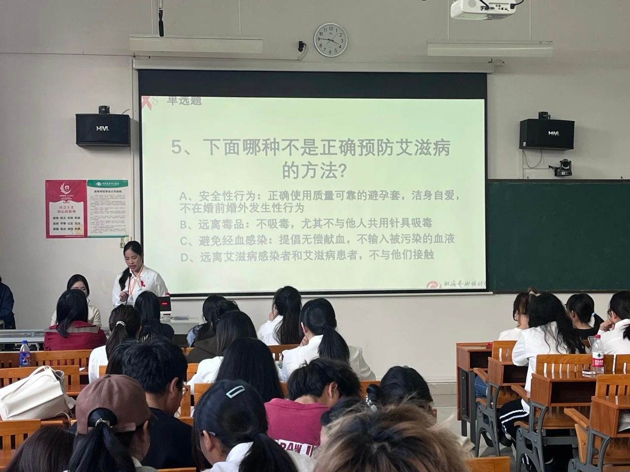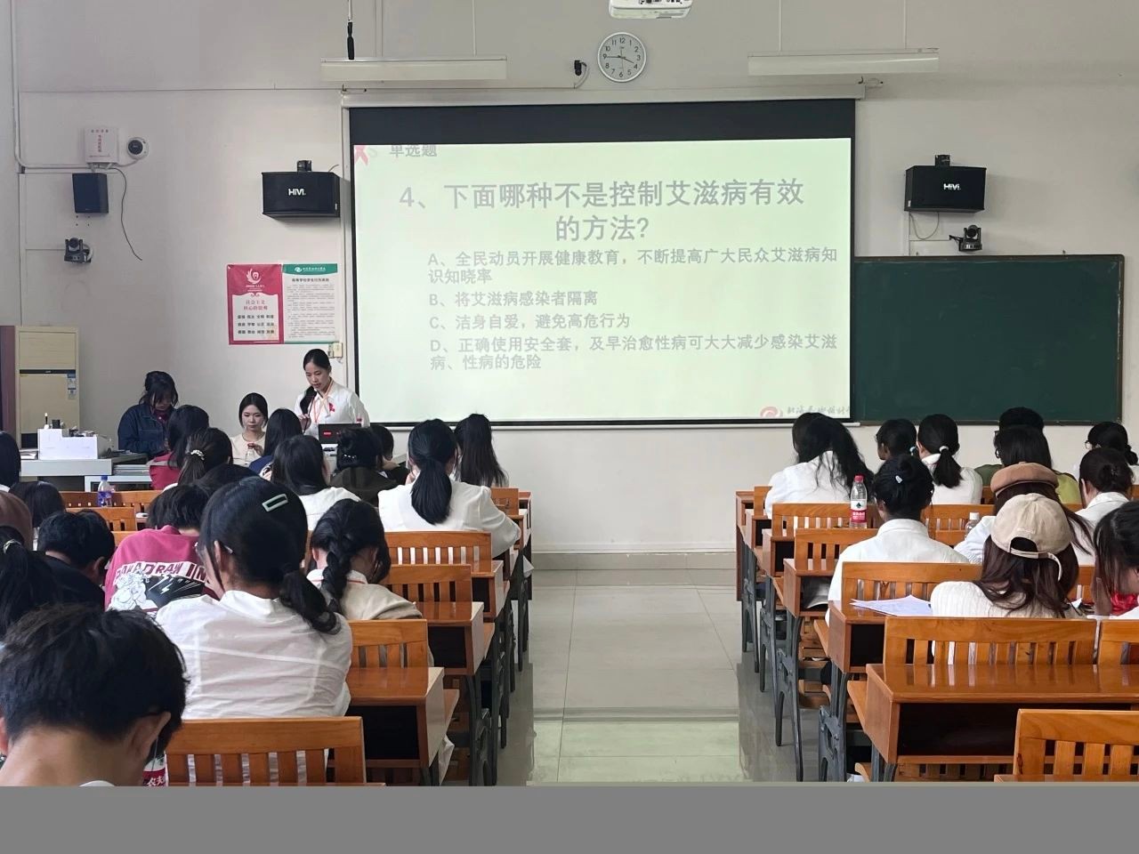 在第36个“世界艾滋病日” 即将到来之际,我校团委青年志愿者协会、青春健康同伴社于11月19日在西校区功德楼116开展“青春健康·你我同行—要爱不要艾”为主题的防艾知识竞赛。