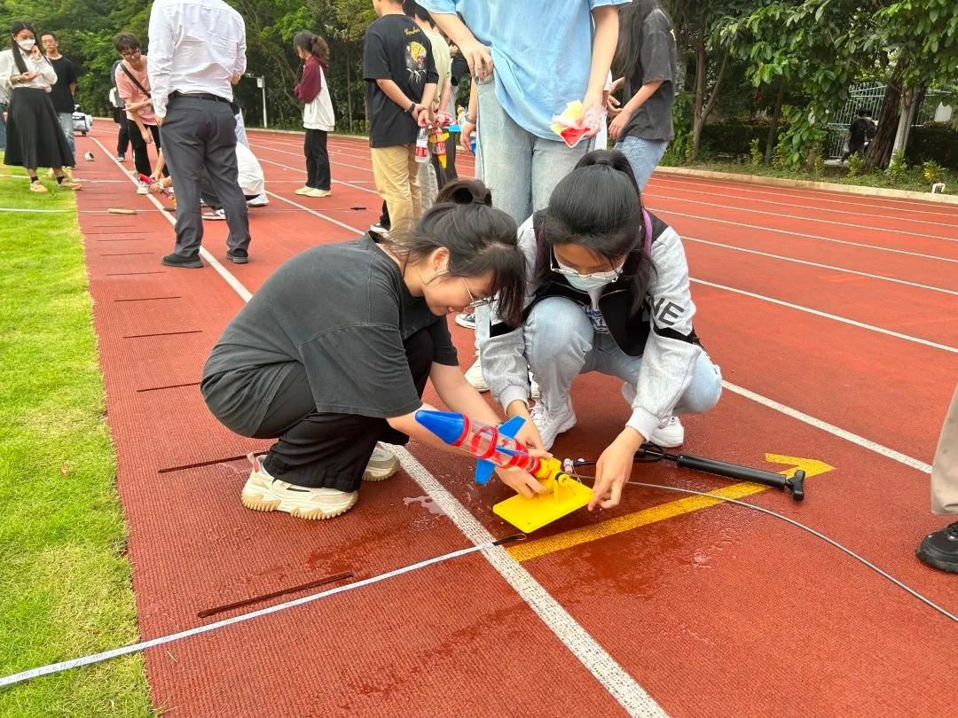 活动一共分为两轮比赛,水火箭组装赛与水火箭发射赛。