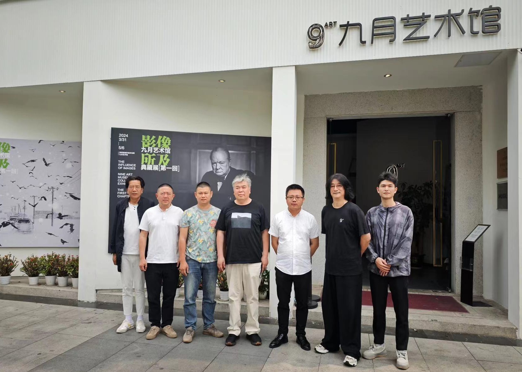 龚为院长、李炫勋主任、喻广林副主任在胡国庆主席的引导讲解下对馆内正在展出的《九月艺术馆典藏展》进行参观。龚为院长对九月艺术馆的展览体系、办馆理念、创作路径与价值取向均表示十分认同,期望以此次校企合作协议的签订作为媒介,通过人才培养、产教融合、实习就业等方面开展深入合作。