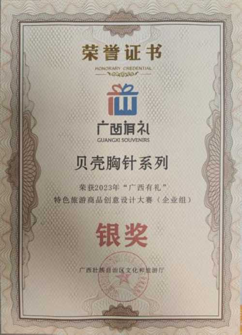 2023作品《国色芳华》获首届“北海有礼”特色旅游商品大赛优秀奖;