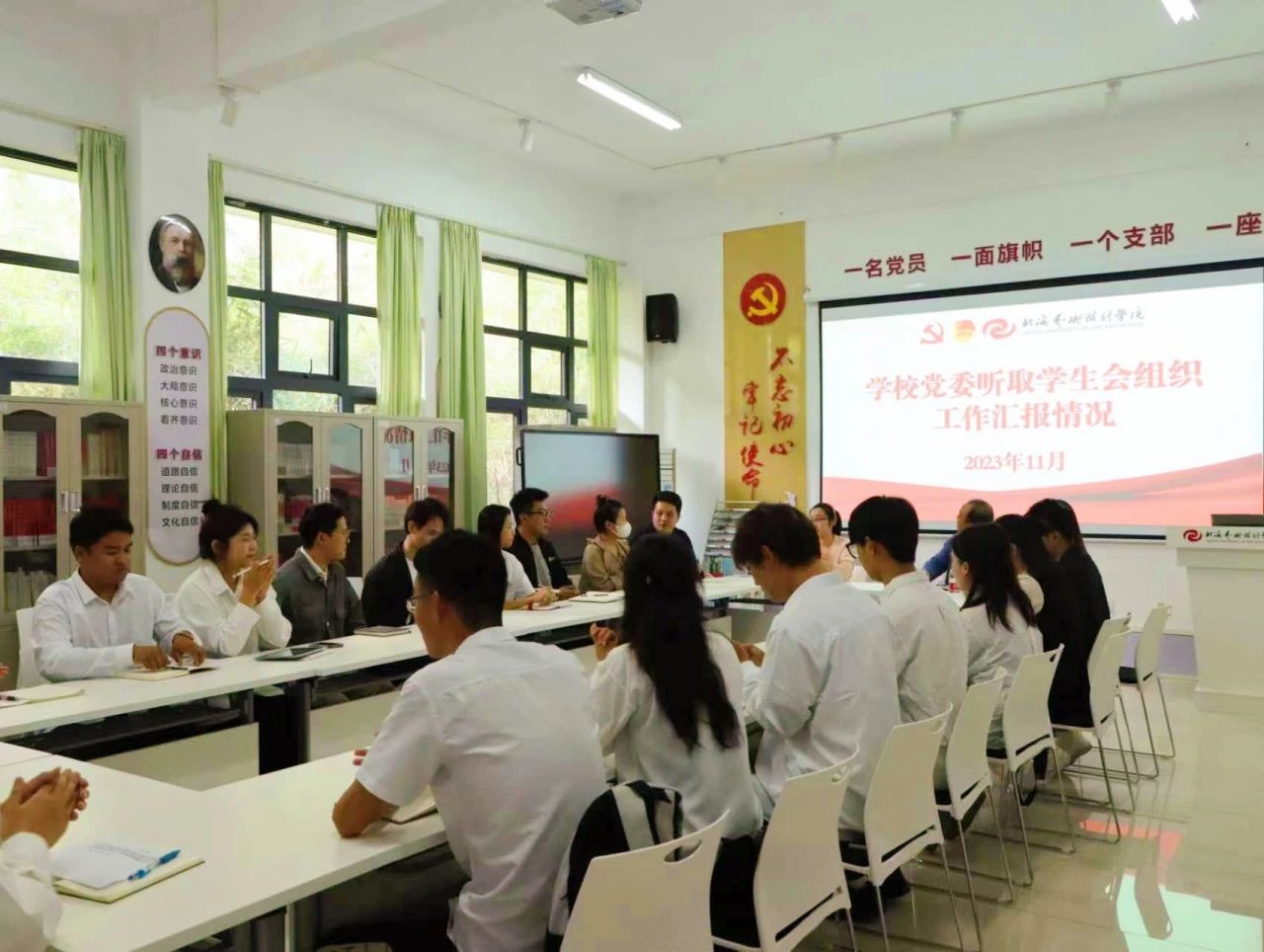 我校党委听取学生组织工作汇报座谈会在11月24日于行政楼103会议室召开,校党委书记范徽忠出席会议并讲话,校团委书记唐良春及各二级学院分团委书记,校团委、各分团委团干、团员代表共30余人参与会议。会议由校团委副书记宋慧敏主持。