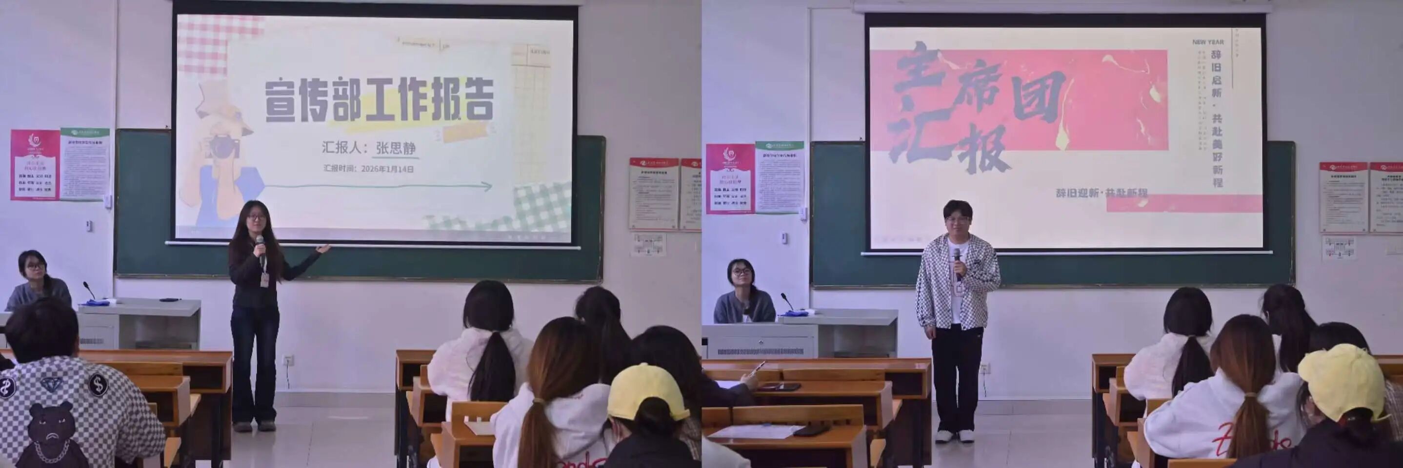 会议伊始,由各部门负责人对本部门工作进行总结汇报,主要汇报各部门的工作亮点、成果、遇到的困难与解决方案以及下学期的工作计划。随后由团总支主席缪仁文进行工作总结。
