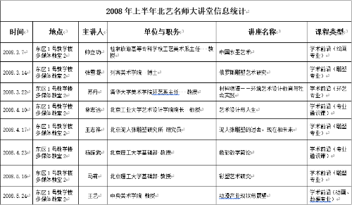 2008年上半年北艺名师大讲堂信息统计