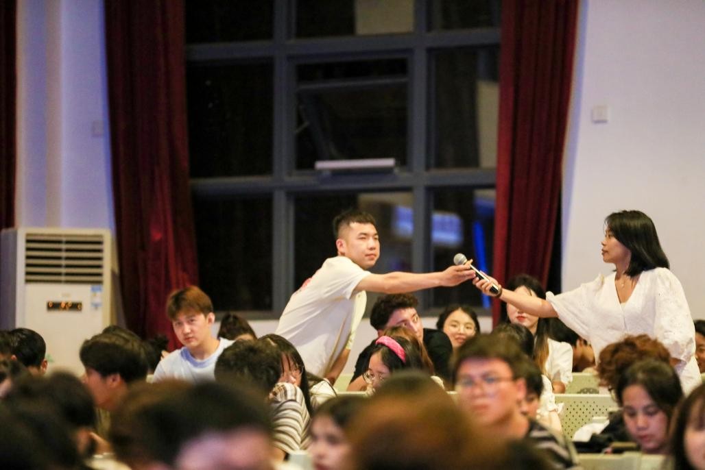 随后是学生提问环节,王照伟院长针对学生提出的问题进行答疑解惑,为2021级学生能顺利上京开展学习生活进行教育和引导。最后,王照伟院长祝愿同学们一切顺利,学业有成。(刘杰/摄)