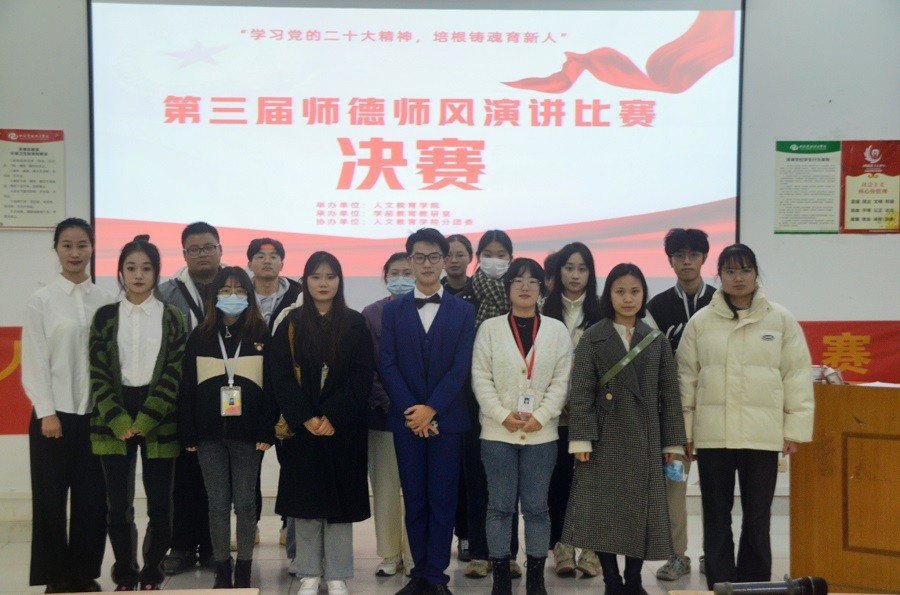 为进一步推动教学实践改革,展现我院学生风采,营造尊师重教氛围,培养和激发学生理想信念,加强专业角色认知,202212月2日,人文教育学院“学习党的二十大精神培根铸魂育新人”第三届师德师风演讲比赛决赛于东校区多媒体2教室顺利举行。