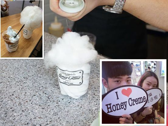 同样的,美食总是到处都会有的,韩国最火 Honey Creme  也出现在这里。他长得不仅有趣,还好吃,不过就是会有点小贵而已。