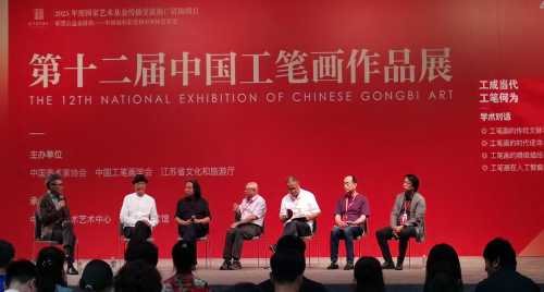 在随后举办的第十二届工笔画展学术对话和学术讲座中,尚辉、林木等专家围绕工笔画传统文脉、时代使命等议题展开研讨,强调工笔画应反映时代精神,于洋教授探讨了图像时代工笔画如何保持艺术本质。陈老师深受启发,表示需在信息浪潮中坚守审美价值,通过创新手法吸引观众,同时在教学中引导学生以工笔画讲好中国故事。