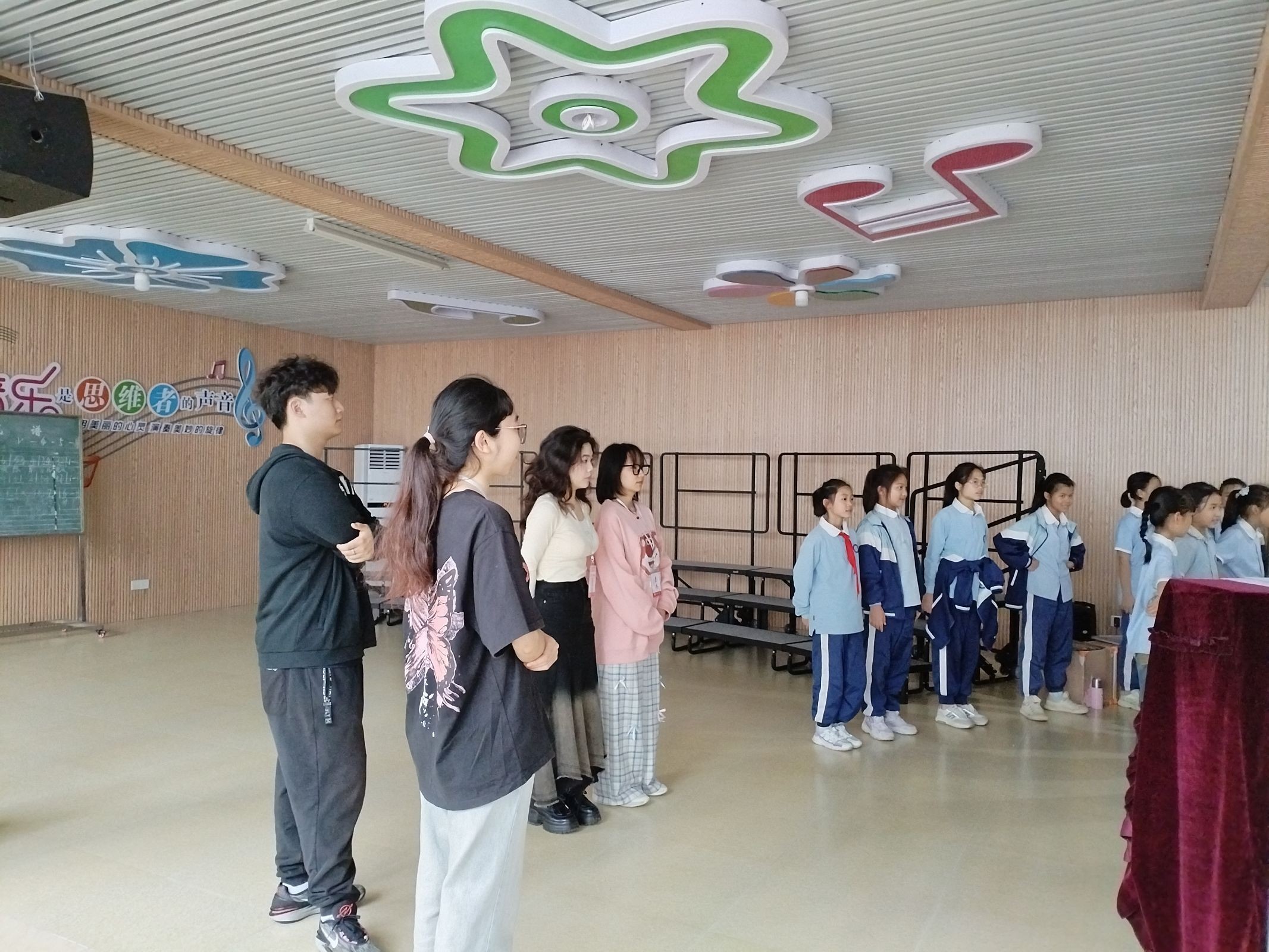 教育见习期间,艺术教育专业学生积极参与了北艺附校的课堂管理、课堂教学等工作,认真学习课堂教师的活动组织方式和问题处理机制。通过实践操作,学生深入了解小学的课堂运行机制,提高了自身教学技能和管理能力,在实践中进一步端正专业意识,树立积极的求学心态,不断提升自身的专业素养。