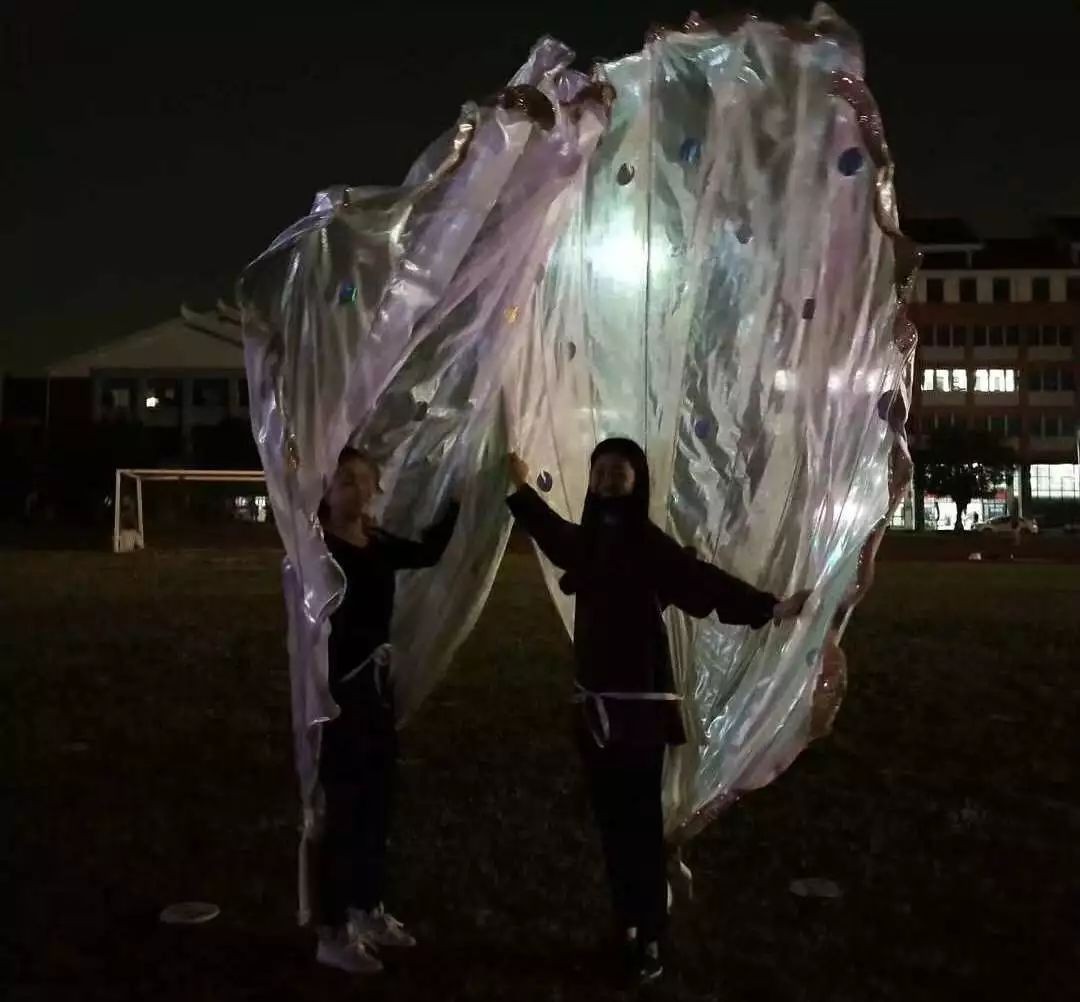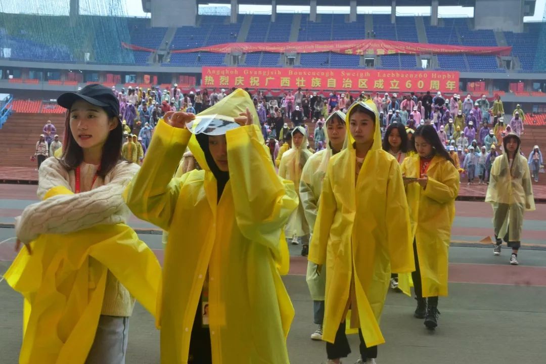 演出前一周,全广西气温骤降,不时伴着小雨。同学们不怕艰辛,听从导演组指挥,按质完成训练。