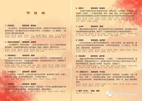晚会在群舞《鸡毛信》中拉开帷幕,舞蹈演员们以多种形式演绎红色故事。舞蹈《雨花石的等待》,描述了雨花石的的革命先烈们,为了人民幸福和民族的解放,在硝烟弥漫的战场上流尽最后一滴血,妻子在漫长等待中期盼英雄们早日回家。《情深谊长》、《心声》分别是彝族、藏族同胞在党的领导下走向解放,走向自由的新生活,表达对党的感恩和解放后的喜悦之情。《八女投江》八位女战士面对敌人威逼利诱、生死抉择关键时刻,英勇投江,宁死不屈,尽显英雄气概,民族魂魄。《我等你》、《渔光曲》分别以军人家属的悲喜、弄堂里的安稳生活为切入点,反映了革命历程中的努力奋斗,我们要心怀感恩,铭记历史,珍惜这来之不易的安宁。《黄河》飞流直下的黄河变成血海,家园沦丧、山河破碎、生灵涂炭,革命先烈誓死保卫家园,抵御外辱,实现中华民族伟大复兴的中国梦勇往直前。《风筝》寄托了孩子们的梦想、对家人的思念,是乡村振兴的集中体现。《草原汉子》新中国成立以来,在中国共产党领导下,各民族团结向上,积极进取,一派欣欣向荣的气象。