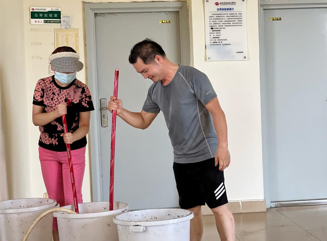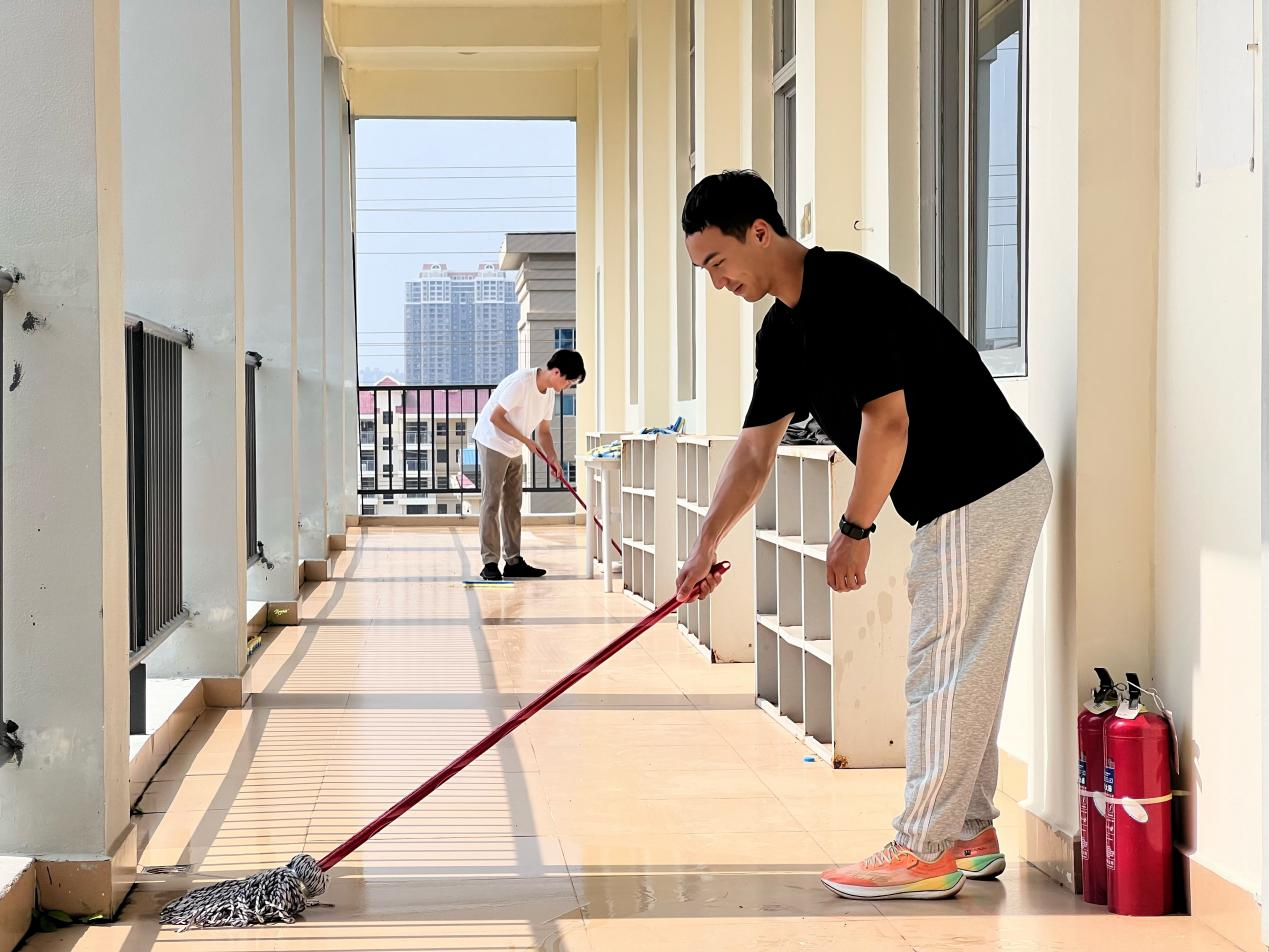 8月30日下午,在蒋辉平副院长的带领下,哲学学院全体教职工深入觉悟楼,手持清洁工具,分工合作,打扫教室、擦拭桌椅、清洁地面、收拾垃圾,细致入微地清扫教学楼每个角落的灰尘,做到教室干净卫生,桌椅摆放井然有序。同时,教师们对教室的门窗、桌椅、灯具进行检查,并将发现的问题进行了记录和处理,确保教室设施正常运转。