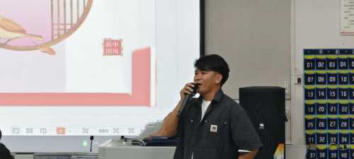 (汉语文学教研室副主任康宗明主持讲座)