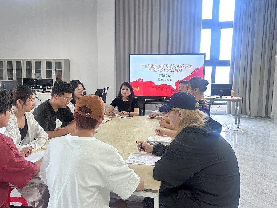 10月11日,我院开展了“认真学习宣传贯彻习近平总书记重要讲话和全国教育大会精神”主题宣讲活动。此次宣讲由舞蹈学院党支部书记宋慧敏主持召开,在宣讲中宋书记提到,我校紧紧围绕立德树人这根本任务,着力于培养德智体美劳全面发展的社会主义建设者和接班人。我们作为当代青年大学生要承担起民族复兴的伟大使命,要努力学习,要坚定理想信念,要敢于挑重任、敢创新、敢奋斗,努力成为德智体美劳全面发展的国家栋梁。