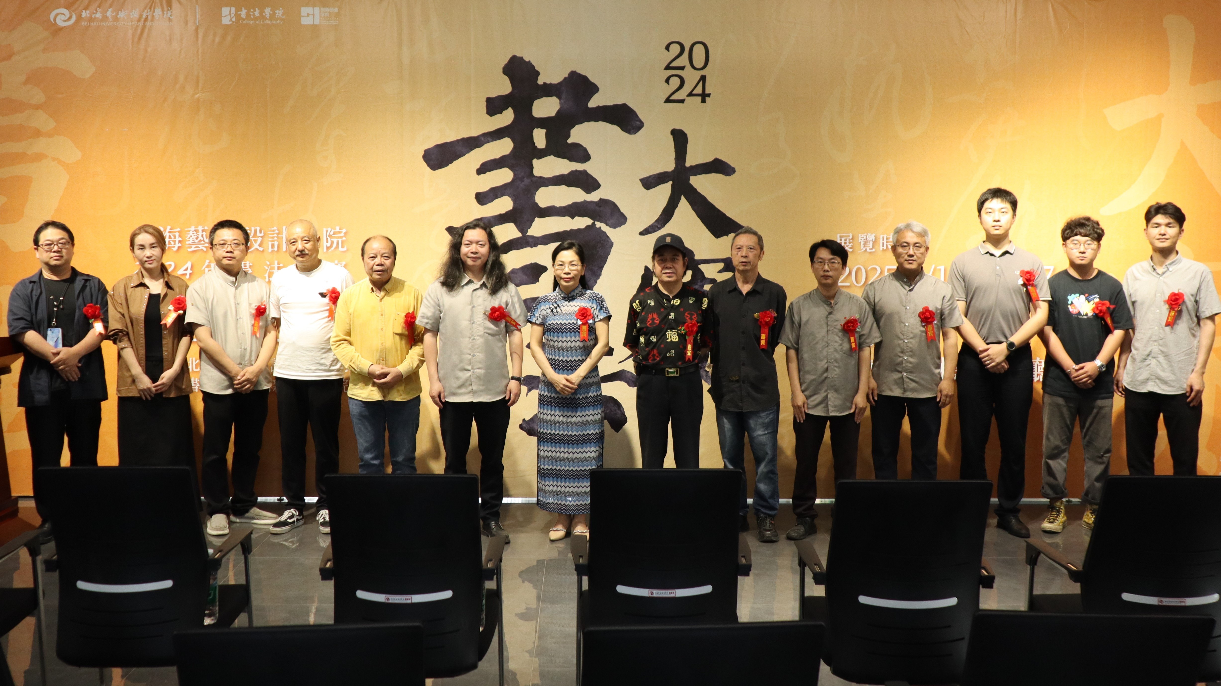 开幕式在热烈的掌声中拉开帷幕。主持人首先向在场的领导、老师及同学们致以诚挚的问候,并介绍出席本次活动的各位领导,包括北海艺术设计学院常务副校长胡胜、党委副书记陈毅华、美术学院执行院长龚为、创新创业学院院长云曼及副院长陈渤水、哲学学院院长李水亮、动画与传媒学院副院长刘涛、建筑与环境艺术学院副院长蔡世伟、书法学院院长黎东明及常务副院长苏乃从、党支部书记喻广林、副院长李东垚,以及书法学院的教授邓建华、万应均、王见等。