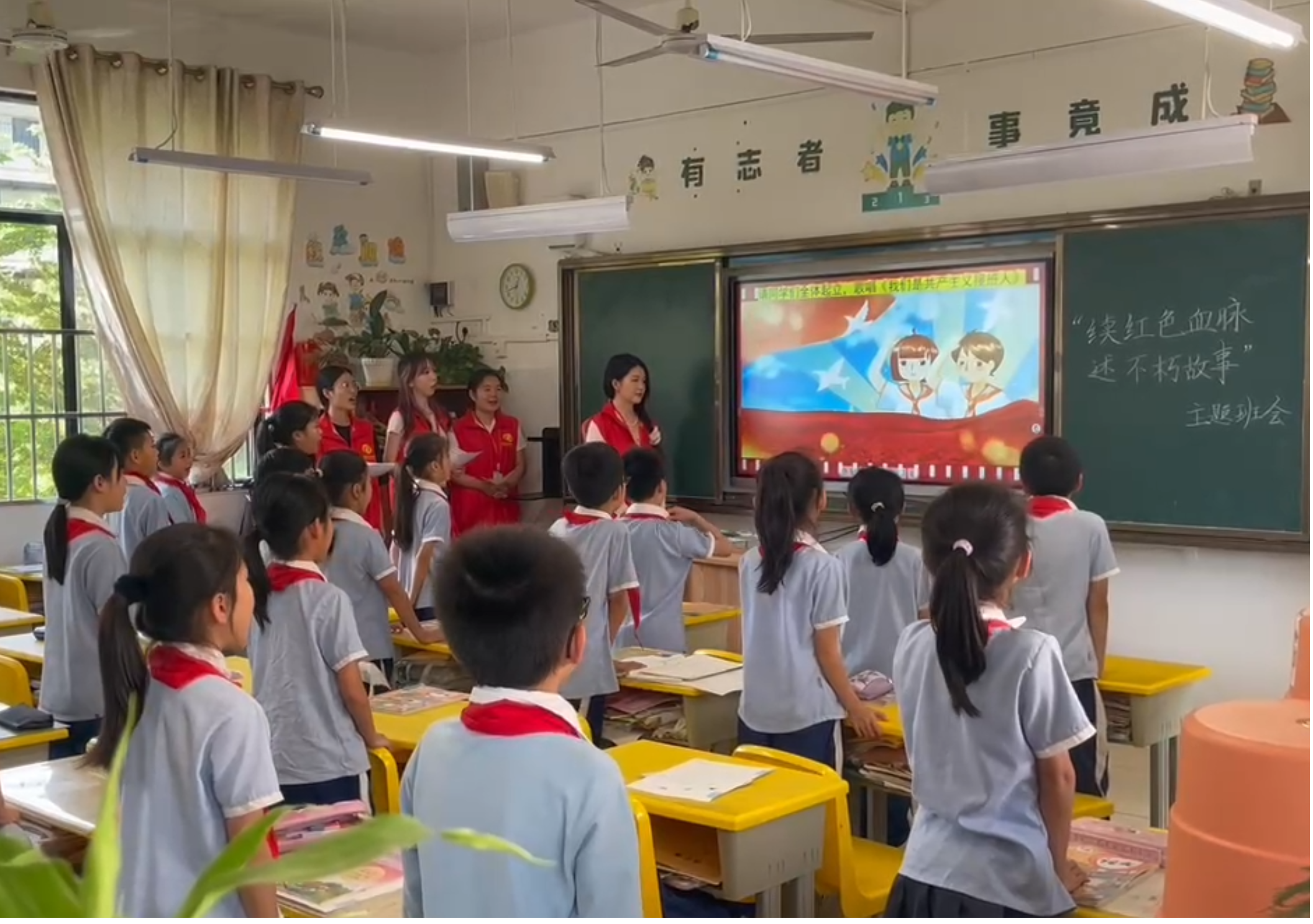 4月18日,见习活动接近尾声,各小组在北海艺术设计学院附属学校五楼会议室展开热烈讨论,围绕一周来的见习内容及心得体会进行了深刻的反思和总结。随后,各小组围绕“讲好北海故事、传承红色基因主题,策划并亲身实践一次走上讲台,带领小学生开班会教学活动。各小组同学充分发挥创意,巧妙设计了形式多样的互动教学环节,通过寓教于乐的方式将红色文化元素融入课堂实践,充分彰显了们卓越的教学创新能力和教育使命意识。