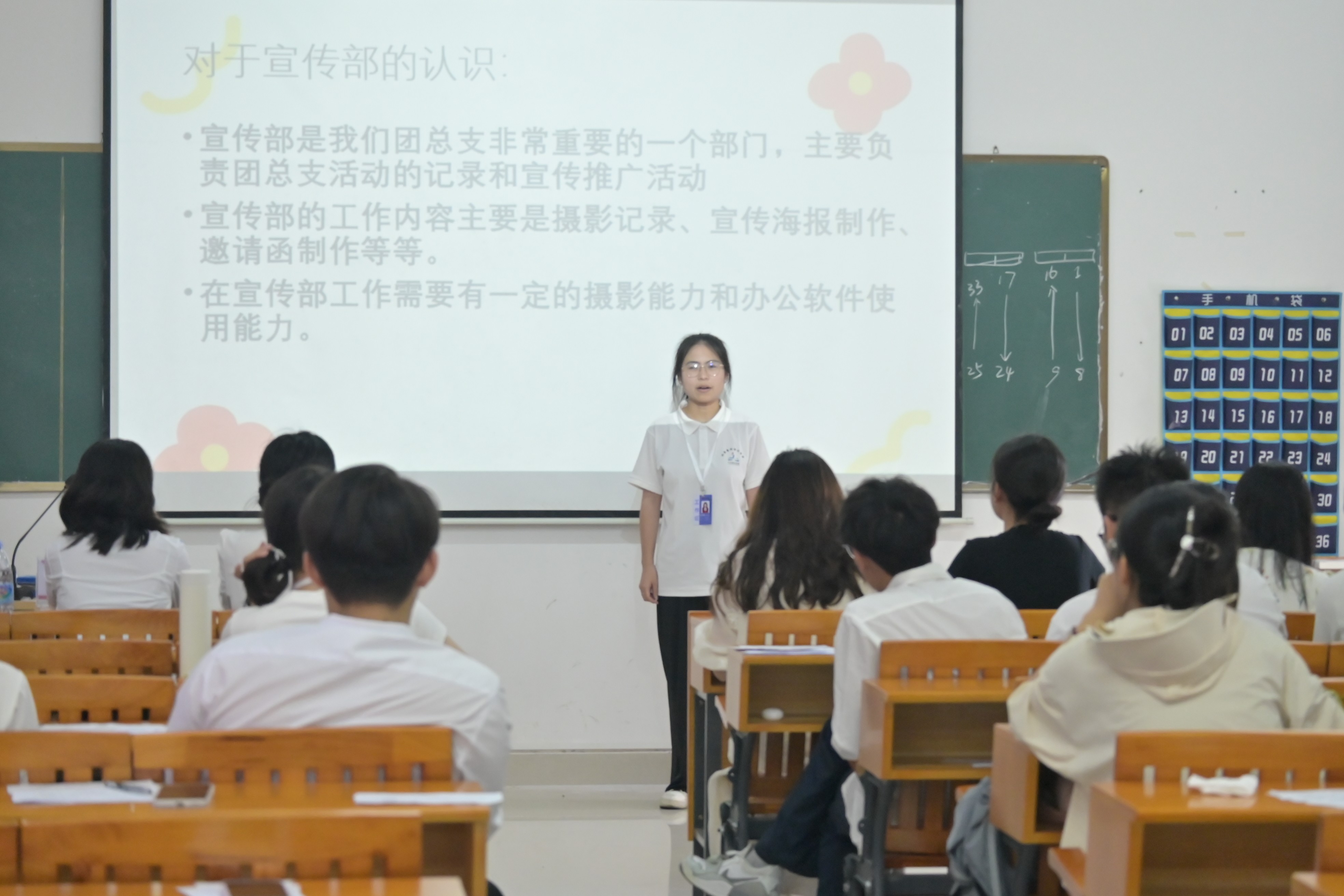 会第项议程是干部竞选演讲。参与竞选的学生干部精神饱满、自信昂扬,依次登台发言。他们基于在团总支的实践经历,阐述了未来的工作规划和展望,结合具体案例分析现存问题并提出创新举措,展现出对工作的深刻理解、强烈的责任感以及勇于担当、积极进取的精神风貌。