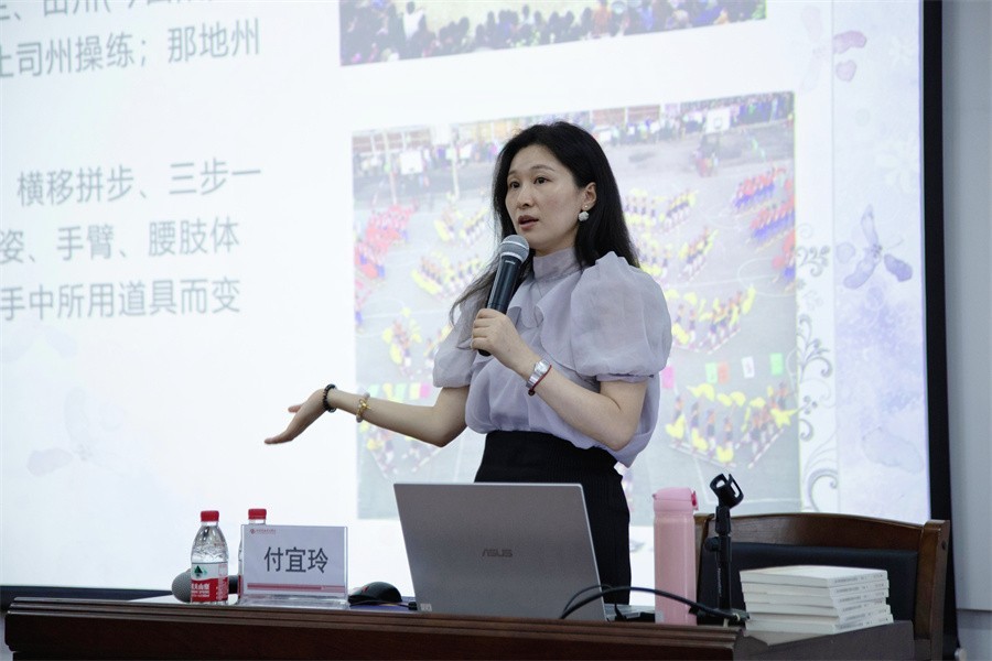 付宜玲教授指出壮族舞蹈作为壮族文化的结晶,承载着古老民族深厚的历史记忆与独特的精神内涵。在讲座中,付宜玲教授从文化、类型、创作三个维度,阐述了壮族舞蹈的种类特征、文化背景及剧目推介。