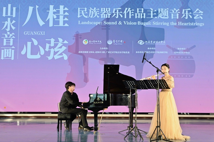 2025101715:00,由北海市旅游文体局、北海市文联、广西艺术学院音乐学院党委主办,北海艺术设计学院舞蹈学院承办的 山水音画八桂心弦民族器乐作品主题音乐会,在北海艺术设计学院西校区大礼堂精彩上演。音乐会汇聚多元音乐风格,融合传统与现代艺术元素,多首兼具民族特色与创新表达的曲目轮番登场,为观众带来了一场别开生面的听觉与文化盛宴。