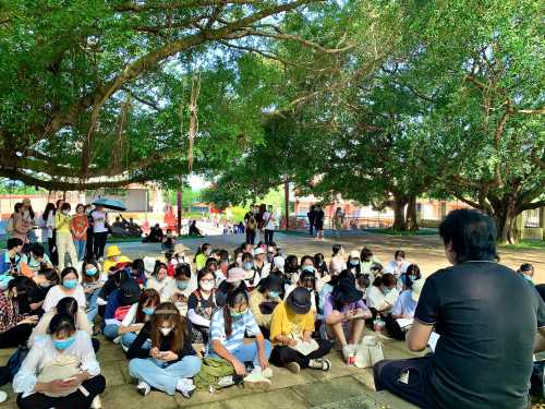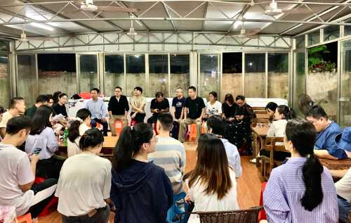 (潘家猛老师在天主教堂的庭院为哲学专业同学做讲座)