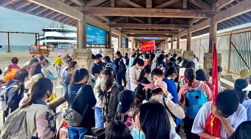 19日清晨,参与本次实践教学活动的全体师生在西校区北门集合,按班级乘车去往码头。中午十二点,全体师生顺利抵达涠洲岛。19日教学活动安排主要是驻地采风,小范围自由行,让学生自主了解当地人文风情,搜集相关学习资料。
