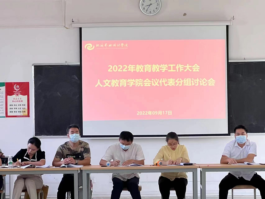 为深刻领会全国教育大会精神及新时代全国高等学校本科教育工作会议精神,贯彻学习我校教育教学大会上的教学工作报告,明确并落实学校“十四五”事业发展规划的各项任务,及时总结我院一年来教学工作取得的成绩和经验,2022917日,我院召开教育教学大会会议代表分组讨论会。人文教育学院领导及代表教师共计46人参与本次讨论。