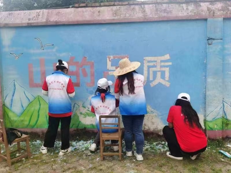 6月16日下午实践活动结束后,在美术学院分团委副书记许荣军老师的带领下,美术学院和各个学院分团委的志愿者们给红锦村村民家中的墙面进行设计与绘画,给枯燥的房子增添了一抹亮丽色彩,为乡村振兴奉献自己的绵薄之力。
