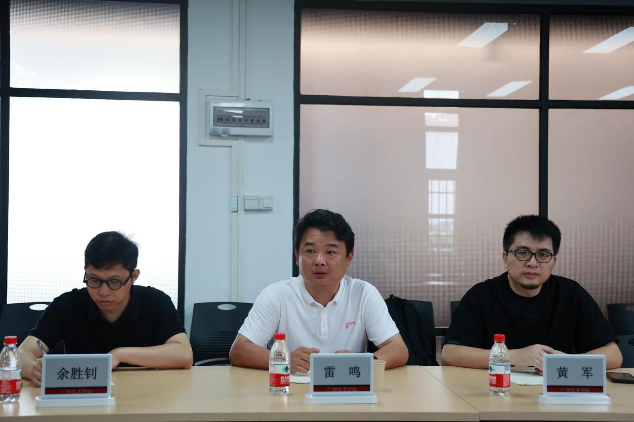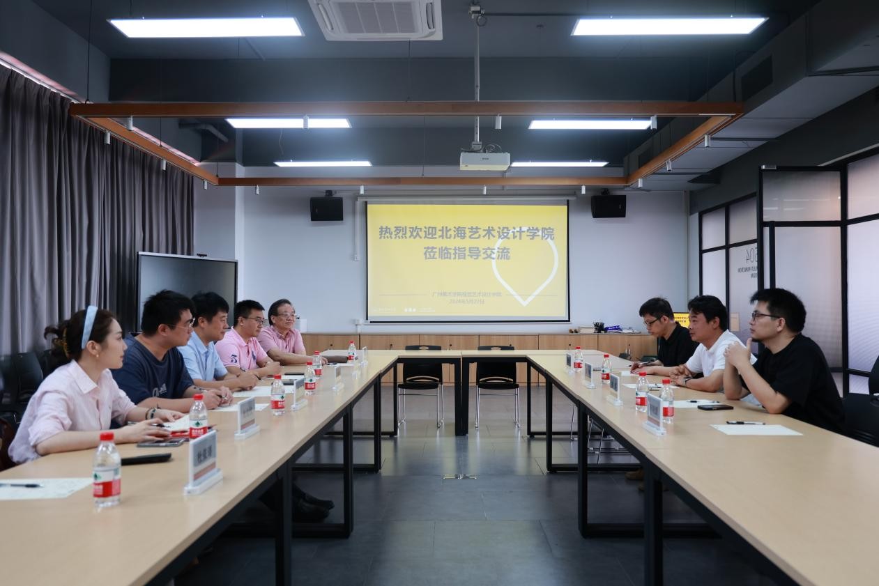 2024年5月27日,北海艺术设计学院校长助理、建筑与环境艺术学院院长王照伟带领学院艺术与科技新专业申报相关负责领导和教师一行前往广州美术学院进行考察交流。此次交流旨在就建筑与环境艺术学院新专业申报事宜向广州美术学院的艺术与科技专业负责人进行深入交流学习。广州美术学院艺术与科技专业负责人雷鸣、黄军、余胜钊老师和张幼云教授参加了此次交流座谈会议。