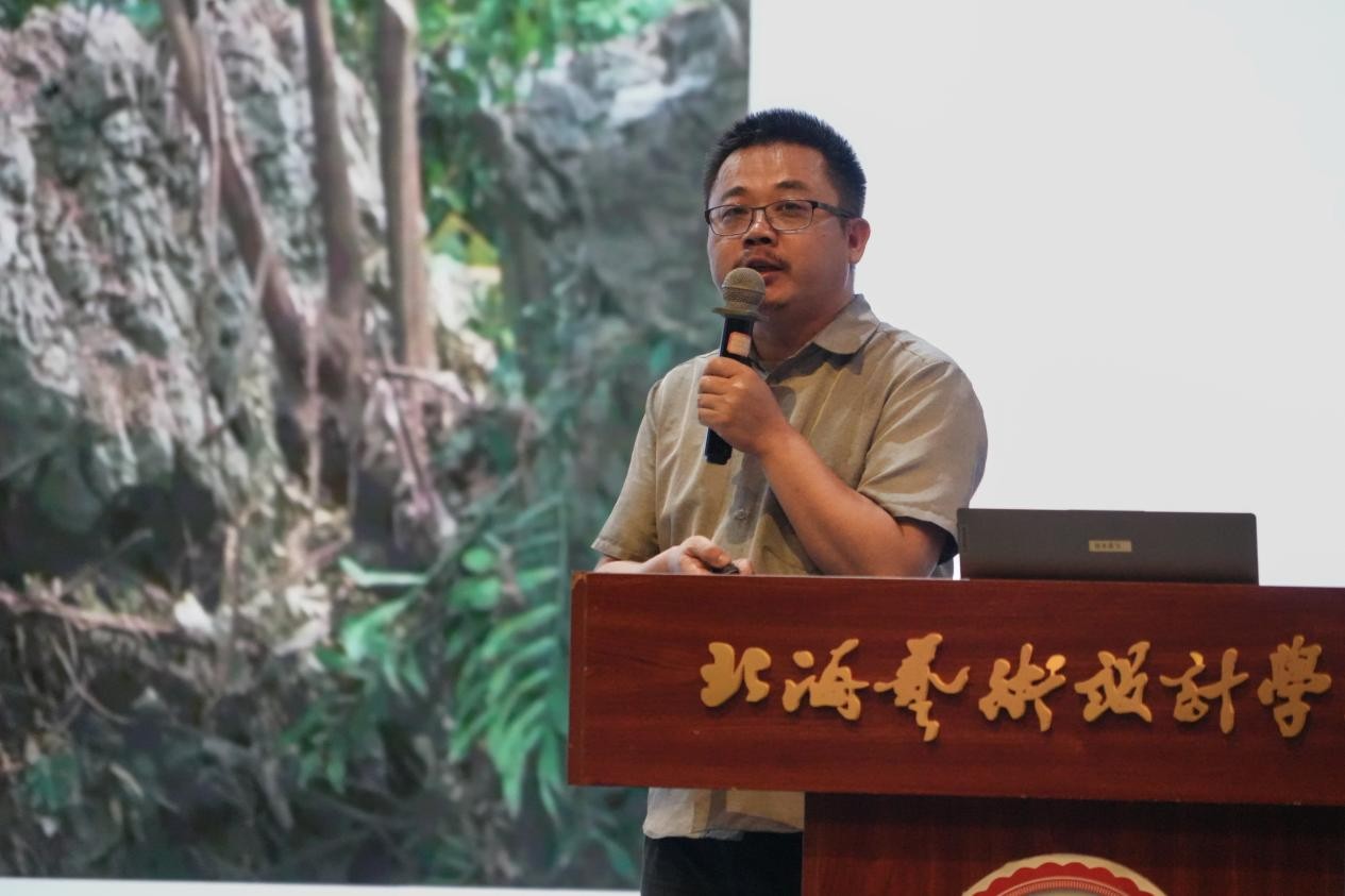 在动员会上,龚院长向参会师生生动介绍涠洲岛独特的人文风情和海洋风光,并详细阐述了本次写生实践的教学目标和任务安排、教学管理要求及写生安全要点。此外,龚院长还展示了部分往届学生的优秀作品,赏析了一些艺术家在涠洲岛的写生作品,以此激发学生们的写生热情与创作灵感。他特别指出,涠洲岛写生是美术学院实践教学中的重要组成部分,通过此次写生活动,旨在拓宽同学们的艺术视野、提升艺术修养。龚院长鼓励同学们以积极的专业态度,主动探索大自然中的隐秘美景,用画笔生动呈现所见所感,争取在此次实践中收获丰硕成果。