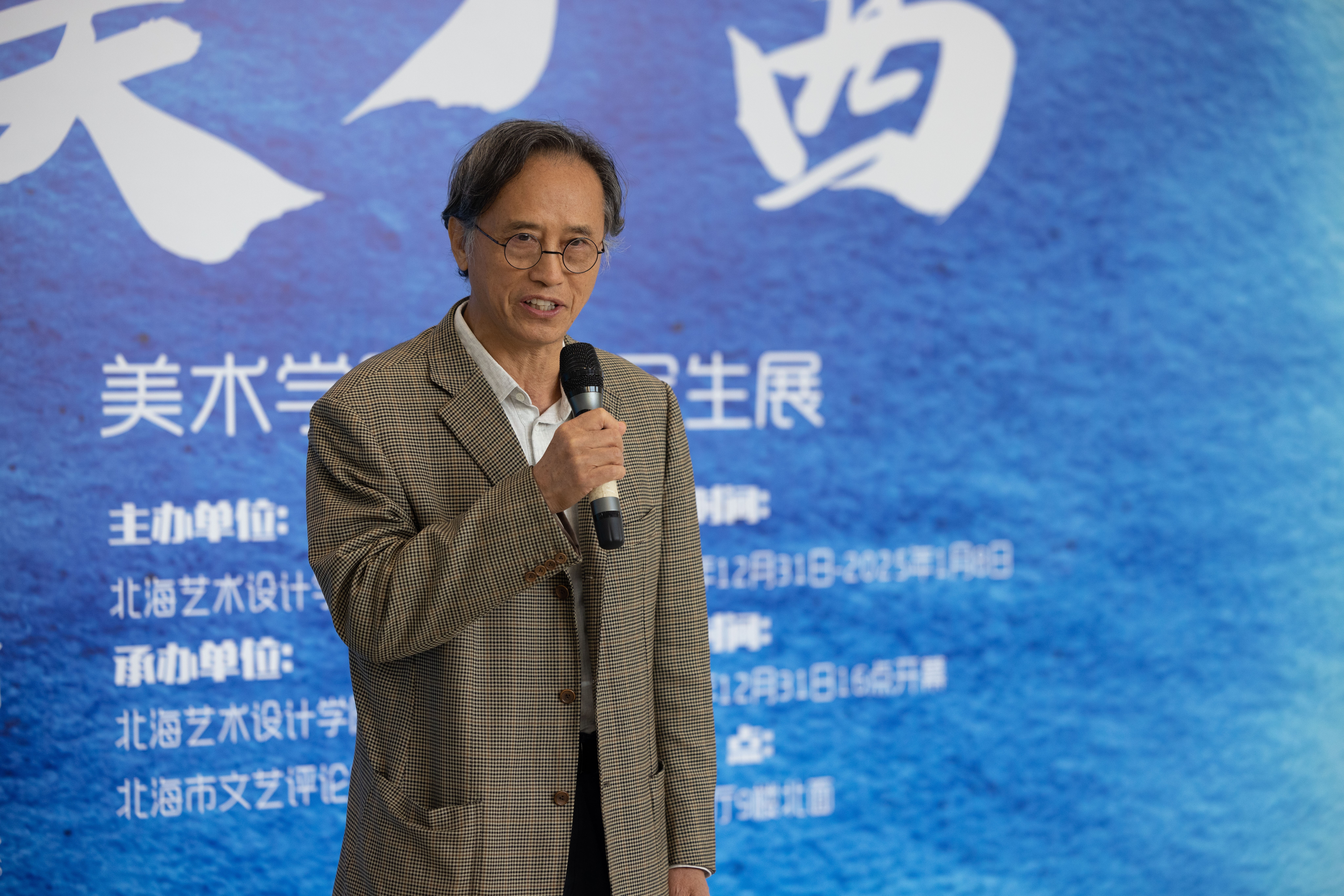 接着,陶立阳副校长发表讲话。他表示,美术学院一直以来积极贯彻党的二十届三中全会精神和党的教育方针,立足民族文化遗产,致力于推动广西文化的繁荣。他认为,广西这片富有魅力的土地,为美术学院师生提供了无尽的创作灵感,美术学院师生用画笔充分展现了广西各地独特的美。他强调,美术学院在教学中要始终坚持以人民为中心的创作导向,立足本土,提升创新能力,同时推动科学与艺术的深度融合。他相信,在美术学院师生的共同努力下,美术学院的建设和广西文化的繁荣都将取得更加显著的成果。