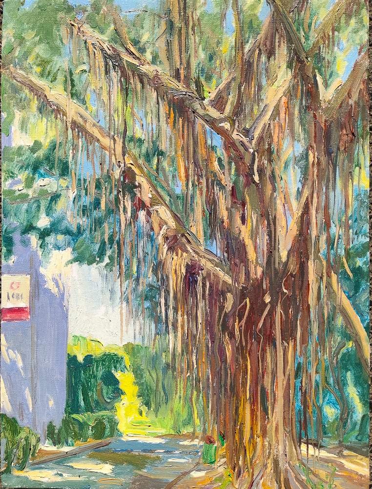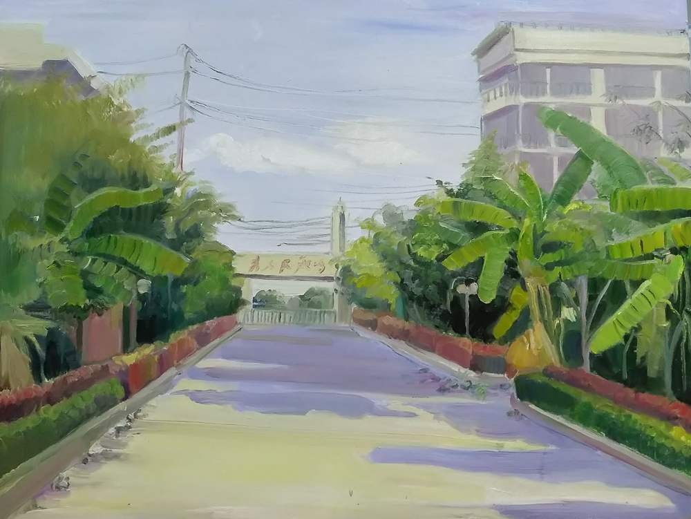 本次校园写生活动为期五天。师生分别集中在东、西校区取景作画进行写生。入冬后,空气中夹杂着丝丝冷意,北风也加快了南下的步伐,略带寒风,可是没有影响到同学们手中的画笔,他们或是坐在绿荫下,亦或是在校园路旁,三两成群,安静作画。