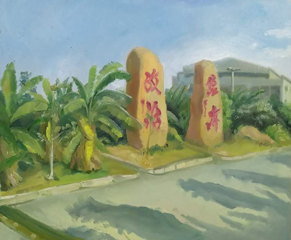 美术学院《风景写生》课程以校园风景写生为主要研究内容与实践方向,绘画过程围绕校园风景的色彩、构图展开,通过对校园选取适当的视角进行绘画表现,让同学们的目光更进一步的贴近校园,加深对学生对校园文化的理解。绘画过程既锻炼了学生们的构图和画面安排的能力,也培养学生对校园文化的认同情感,对绘画专业学生创作能力有很大的提高。比如学校的每一块石头的字样都有不同的涵义,通过写生实践活动,进一步加深了对北艺校园石头文化背后精神的理解。