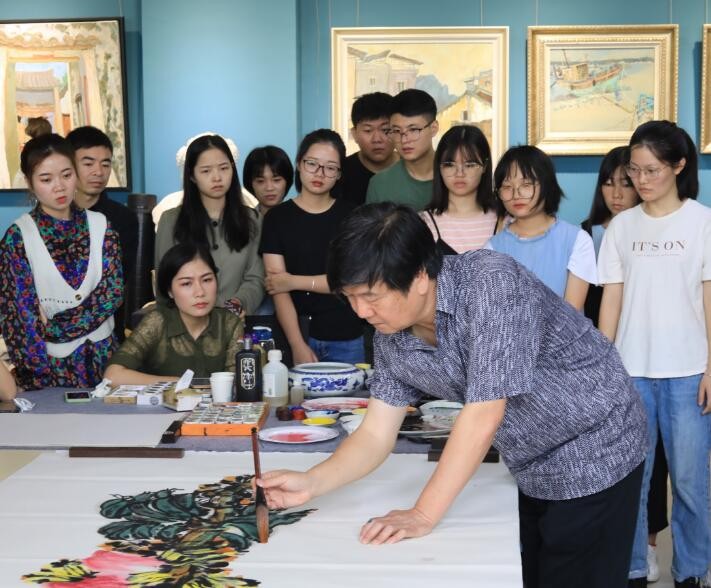 2019年11月17日上午,广西艺术学院艺术研究院副院长蔡智教授来到我校美术学院艺术楼313,为师生们进行国画现场创作示范。我校副校长胡胜、美术学院常务副院长龚为陪同出席活动,现场吸引了许多师生前来观摩学习。