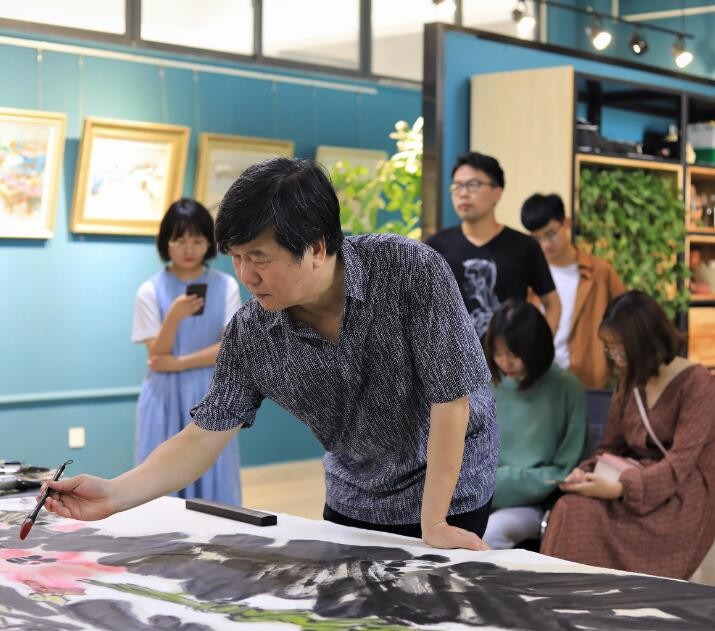 随后,蔡教授开始进行范画创作,并对创作过程进行了深入浅出的讲解。