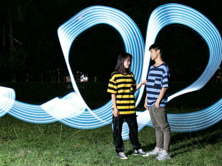 讲座之余,北艺的夏夜,徐老师还专门为同学们示范了光绘技巧,经过科学、系统、严谨的现场布光和相机设置。