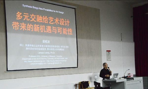 2017年6月5日19时30分功德楼107,由美国哥伦比亚密苏里大学终身教授,梁蓝波博士为我们全校师生带来了一场关于《多元交融给艺术设计带来的新机遇与可能性》的精彩讲座。