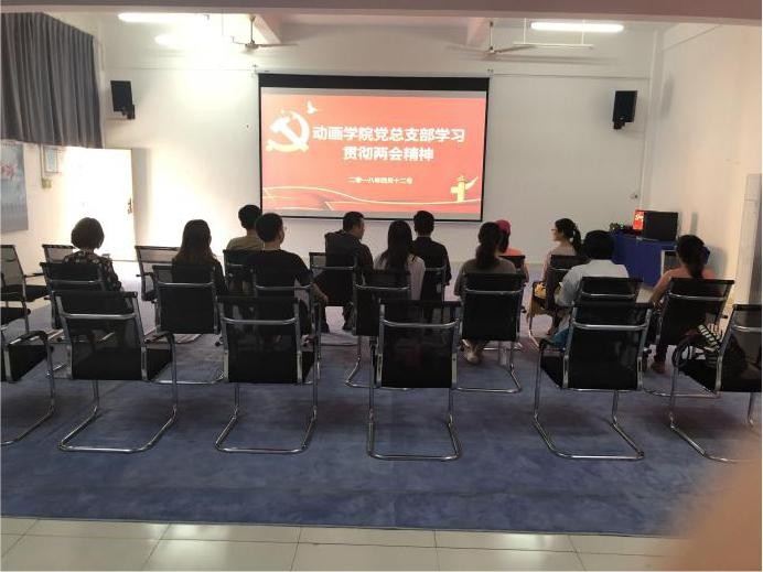 2018年412下午动画学院党总支部在综合楼四楼演播厅开展日学习活动。本次会议主题为“学习两会精神,践行党员责任”。