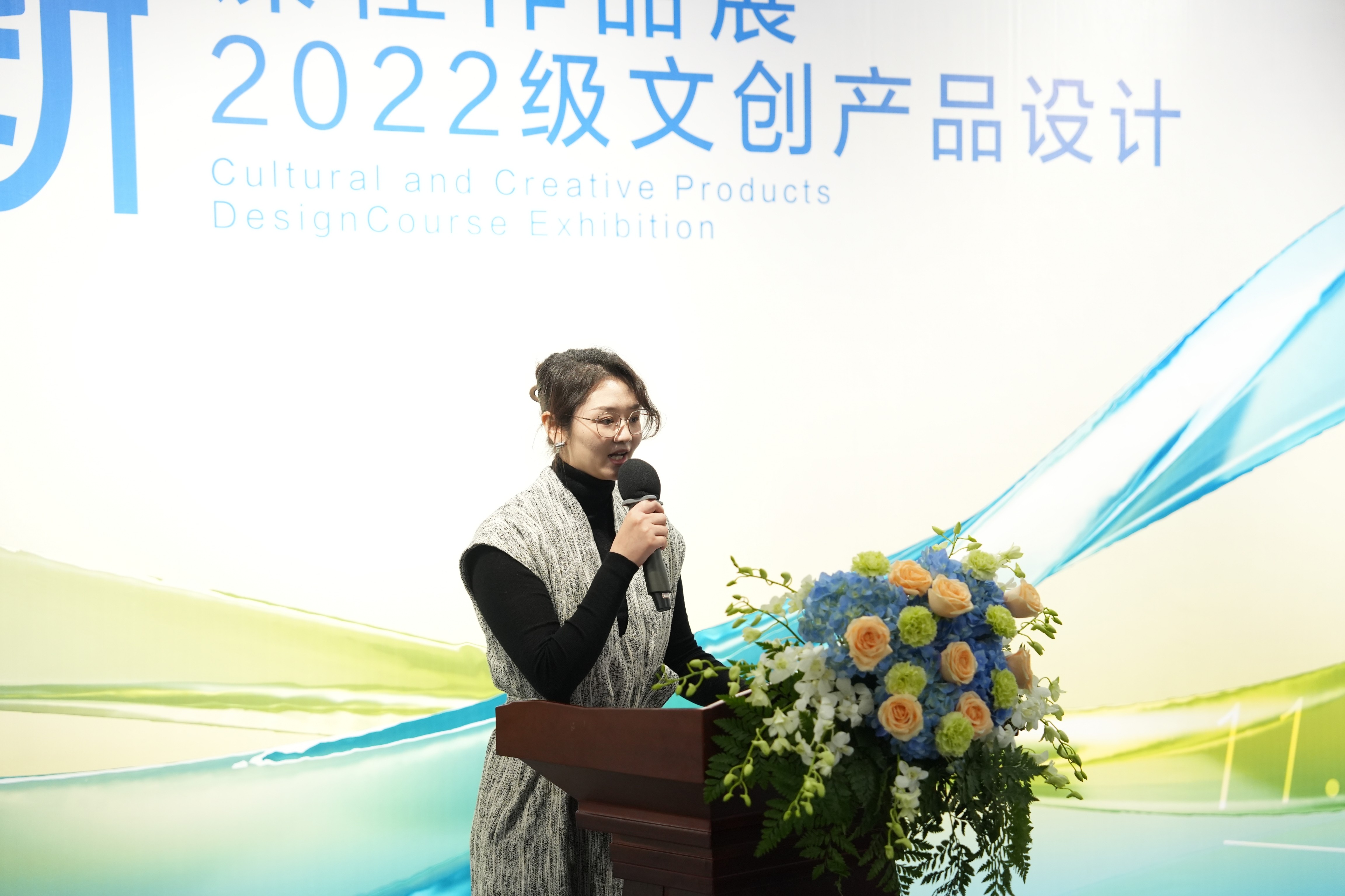 接下来,学生代表视觉2215班邵婉婷同学以饱满的热情分享了自己在文创产品设计课程中的学习心得和创作体会,展现了我院学生对传统文化的深刻理解和现代设计的巧妙融合。