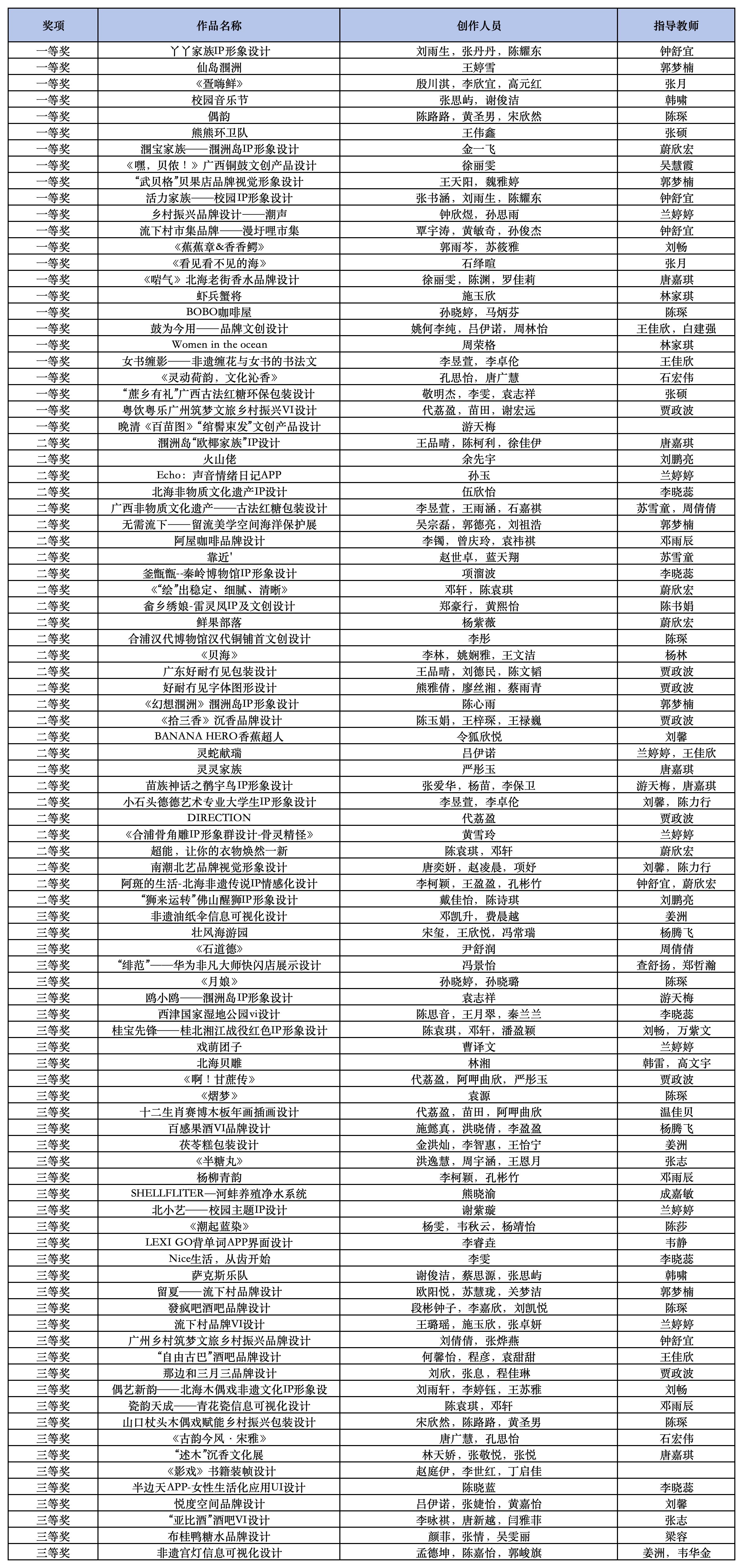 近日,2025第13届未来设计师·全国高校艺术设计大赛(NCDA)省级赛事获奖名单揭晓。在此次赛事中,我院师生荣获佳绩,共计93项,其中学生一等奖23项、二等奖29项、三等奖40项,教师一等奖1项,北海艺术设计学院评为“省级优秀组织单位”。