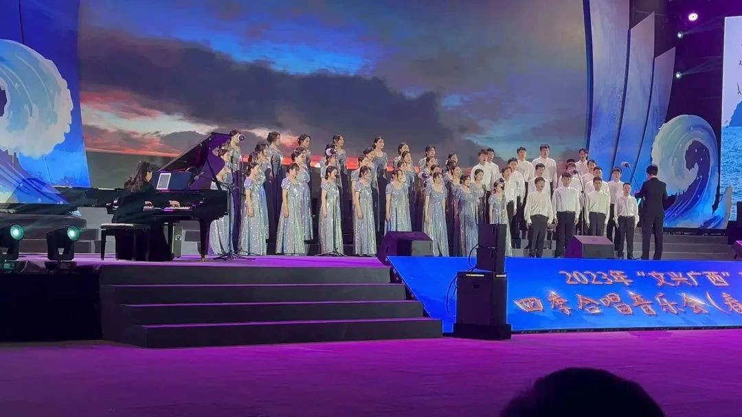4月1日晚,我校大学生艺术团参加由广西壮族自治区文化和旅游厅、北海市人民政府主办,北海市旅游文体局、广西壮族自治区群众艺术馆等承办的2023年“文兴广西 ”系列活动——四季合唱音乐会(春之声)展演在美丽的北海银滩展演。来自湖南、贵州和广西等地的12支合唱代表队的500多名演员在“南珠之乡”、海上丝绸之路重要始发港共同唱响、奏响春天最“美”的乐章。国家公共文化云等平台对精彩展演进行了现场直播。