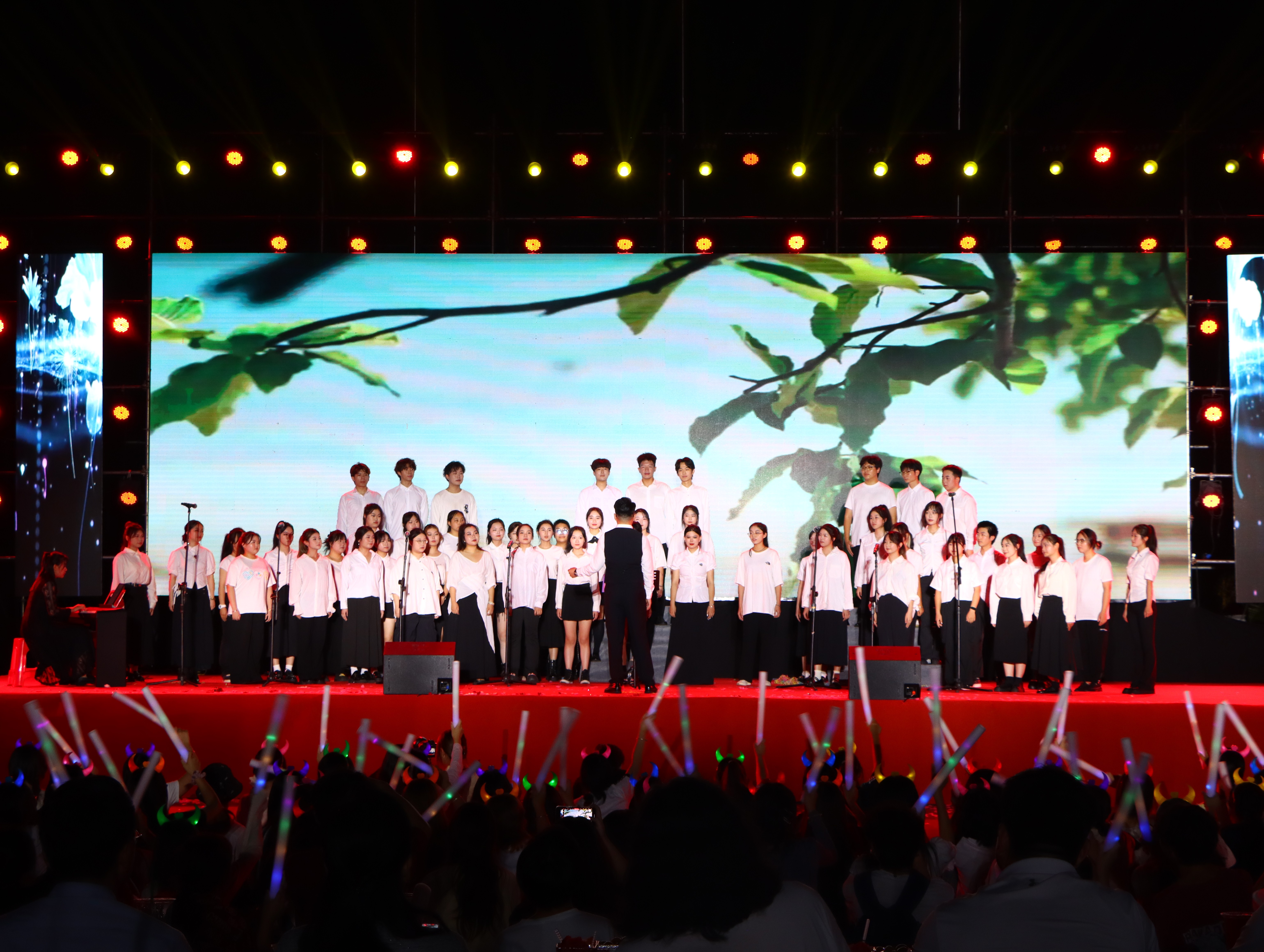 歌声婉转,诉说情感。老师们带来的合唱歌曲《爱》用充满爱与关怀的歌声迎接着北艺的新生们,给予他们独属于北艺的温柔与浪漫。