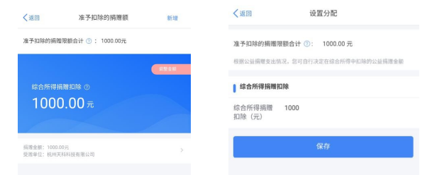 新增捐赠额后,可点击【调整金额】设置您要在综合所得中扣除的金额。