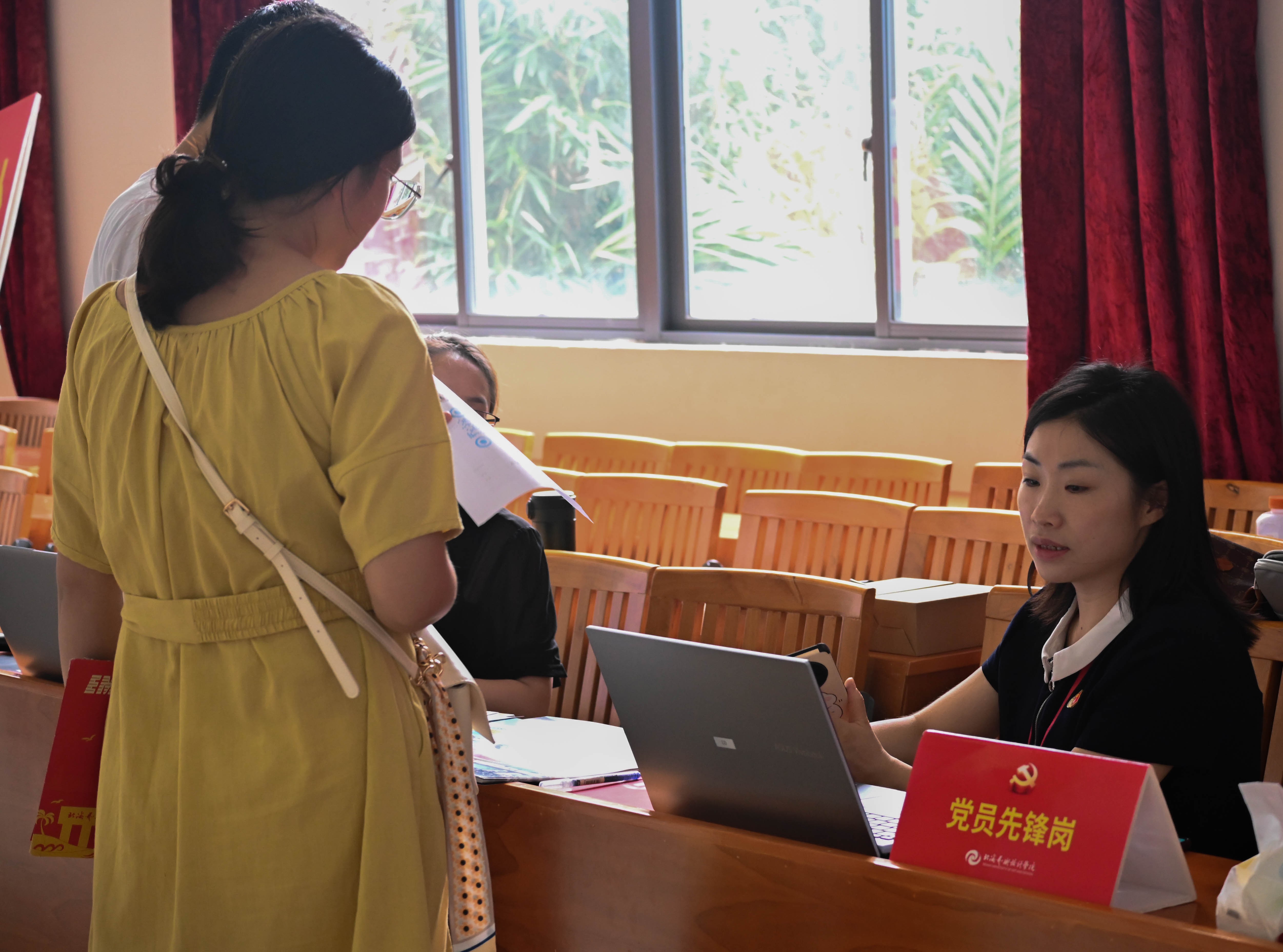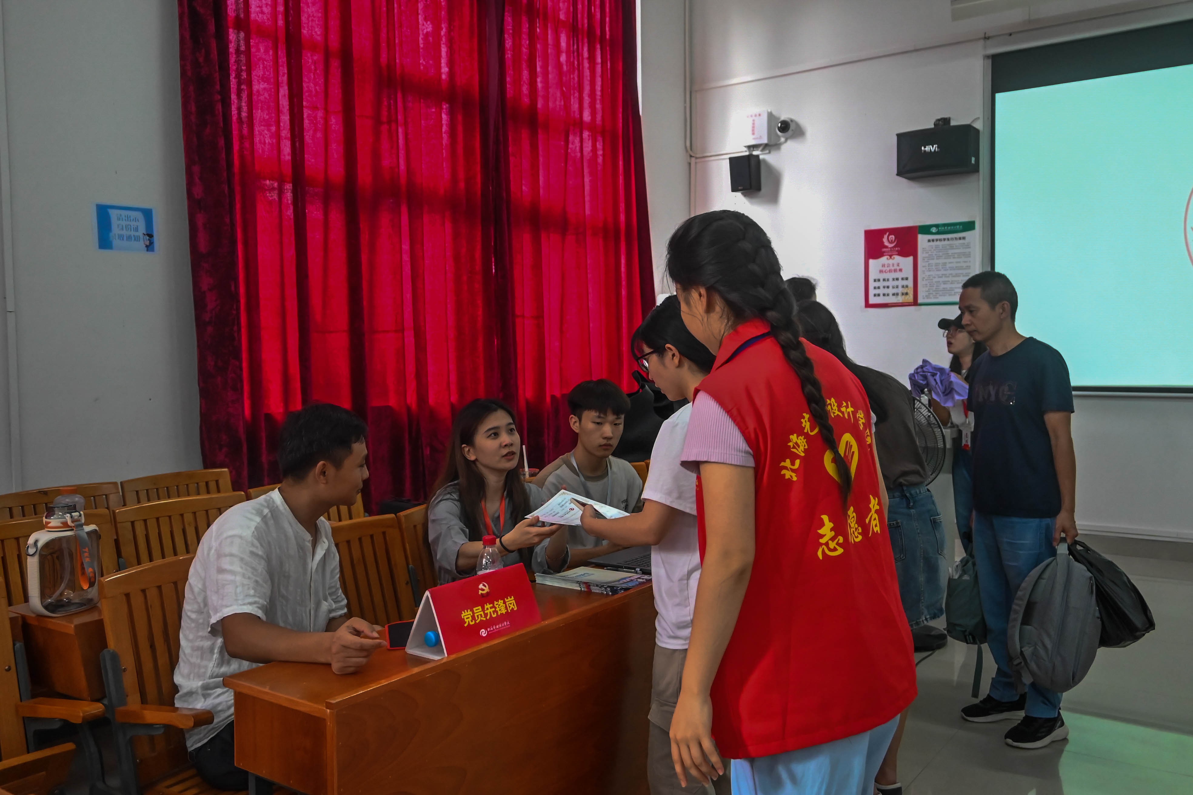 在学院迎新点的党员先锋岗,党员教师统一佩戴党员徽章,亮明党员身份,以饱满的热情投入到迎新工作中。党总支书记熊秀峰亲临迎新现场,指导迎新工作,并为新生答疑解惑。党员同志们用热情的微笑、耐心的言语为新生提供暖心周到的服务,累计服务新生达五百余人次。