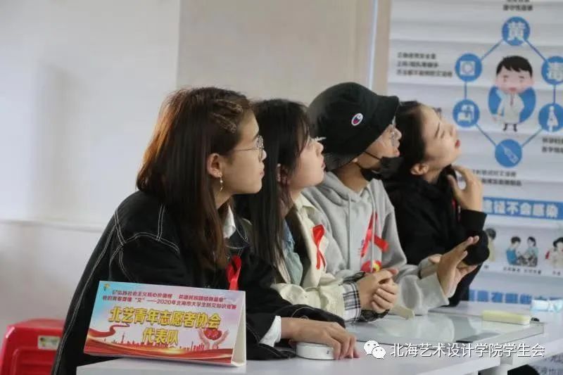 11月29日上午,由共青团北海市委员会、北海市青年联合会、北海市学生联合会主办,北海市长青社会工作服务中心、北海市青少年发展服务中心、北海艺术设计学院团委、学生会、北海职业学院团委、学生会共同承办的“弘扬社会主义核心价值观  共谱民族团结新篇章”我的青春要懂“艾”——2020年北海市大学生防艾知识竞赛活动在我校举行。来自北海职业学院及北海艺术设计学院的6支高校学生队伍参与竞赛,100余名大学生现场观赛。