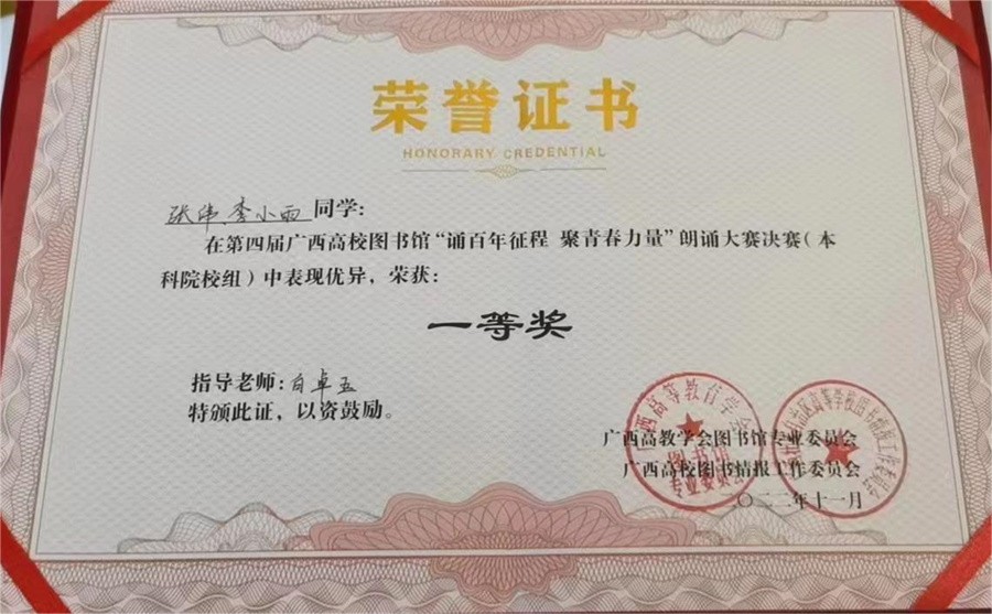 【以评促建】我校学生在第四届广西高校图书馆朗诵大赛中喜获佳绩