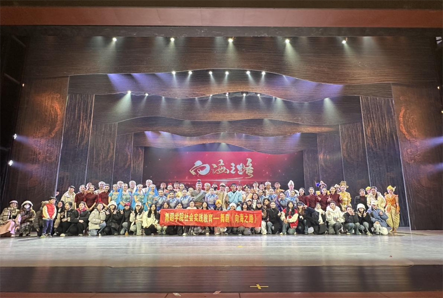 在此次舞剧展演中,我校舞蹈学院精心组织了500余名师生前往现场开展社会实践教育活动。在学习地方历史文化的角度上,舞剧《向海之路》不仅是对“海上丝绸之路”这一重要历史事件的再现,更是通过细腻的情感表达和生动的舞蹈语汇,深刻挖掘并展现了中华民族自古以来海纳百川、开放包容的文化特质。舞剧对于舞蹈学院师生而言,既是一次视觉与心灵的双重盛宴,更是一次深刻的地方历史文化教育。在提高舞蹈表演专业学生专业水平的角度上,《向海之路》是一部极具学习价值的作品。通过集体观摩,学生可以深入学习到如何在舞蹈创作中融入历史文化背景,运用身体语言讲述故事、传达情感,了解在保持舞蹈艺术性的同时,兼顾舞台叙事的连贯性和观赏性。此外,剧中演员精湛的演技、默契的配合以及对角色深刻的诠释,也为舞蹈专业的学生提供了榜样范例,激励学生在未来的学习与创作中,不断追求卓越,勇于创新。