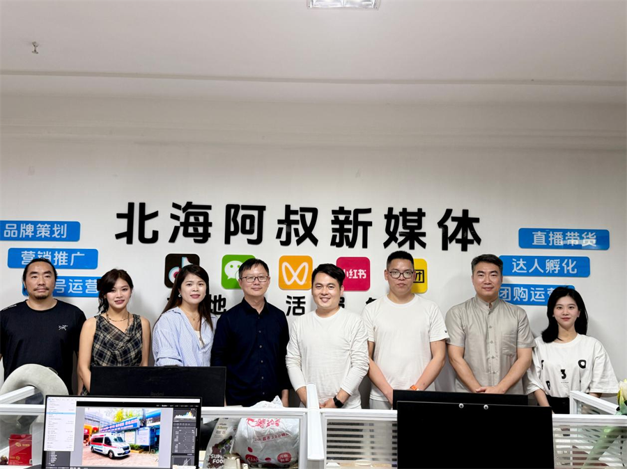 北海阿叔文化传媒有限责任公司作为一家综合性文化传媒企业,业务涵盖短视频制作、直播带货、达人孵化等领域。行动小组到该企业考察了一系列行业优秀作品案例以及各领域的发展情况,双方还围绕新媒体人才的培养展开了探讨。